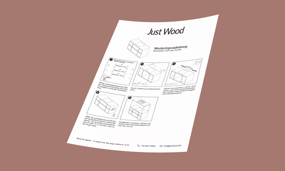 Find inspiration Customer Cases - OverviewHere you can find several of our customer cases featuring Carpenter bathroom furniture and Carpenter kitchens which we are incredibly proud of. Get inspired by how others use Just Wood in their dream homes. Read moreCarpenter Bathroom Furniture - Your OptionsHere you can get more information about all the different options you have with our fantastic carpenter bathroom furniture, so you can achieve exactly the style you want for your home. Everything from oiling, number of drawers and dimensions to countertop choices and more. Read more Marmorline Bathroom CountertopsAt Just Wood, we are proud to partner with Danish Marmorline, where we can offer all their beautiful and exclusive bathroom countertops for your new carpenter bathroom furniture. Marmorline can produce everything from marble, granitex, betonex, solid surface, art-line, stone, and glass. You will find many different designs and colors, so you can get exactly the look you want in your home. Read moreKitchen Countertop MaterialsTo complete your new dream carpenter kitchen, you have the opportunity to choose exactly the countertop you want with our large selection. We have everything from compact laminate, natural stone, marble, quartzite, ceramic, dekton, composite stone, silestone, and steel. You will find many different designs and colors, so you can achieve exactly the look you want in your new kitchen. Read more Kitchen FrontsWhen you buy a carpenter kitchen from Just Wood, you have the option to combine it with a different type of door to create exactly the look you desire. Here you can see our beautiful door series and color options. Read moreSolid Surface Bathroom Countertop with SinkIf you want to know more about our elegant Solid Surface bathroom countertops that exude minimalism, you have the opportunity to read more about the material, how to install it, maintain it, as well as details and repairs. Læs mere Assembly and Installation InstructionsHere you can find all our assembly and installation instructions for carpenter bathroom furniture, kitchen, kitchen island, and plinth, so you can feel confident when assembling and installing your new carpenter furniture from Just Wood. You will also be able to read more about how to adjust the drawers and find a care guide for our carpenter products. Read moreFAQ - Frequently Asked QuestionsBathroom FurnitureIs Just Wood Suitable for the Bathroom? Yes, Just Wood bathroom furniture is oiled and therefore has water and dirt repellent properties. To maintain a beautiful and strong surface, the products must be maintained with oil as needed. Are Just Wood Bathroom Furniture Delivered Assembled? Yes, all standard Just Wood bathroom furniture is delivered assembled. All you need to do is mount the furniture on the wall and place the sink on it. How is Just Wood Bathroom Furniture Delivered? We deliver all Just Wood bathroom furniture and bathroom sets with our own drivers. This ensures your peace of mind as the goods are handled by our people who are accustomed to handling Just Wood products. Bathroom SinksCan I Choose the Size of the Tap Hole Myself? Yes, if you wish for us to drill the tap hole with a different diameter than Ø35 mm (which is standard), you can simply note this in the comment field on the ordering page. What are the Sinks Made Of? The sinks in all our standard bathroom sets, except for Just Wood Micro, are made of Solid Surface. This material is a strong composite material, originating from the Danish company Marmorline. The sinks are dyed white throughout, which enables details such as the five small overflow holes. Can I Get Materials Other Than Solid Surface? Yes, we offer the full range from, among others, Marmorline, Marbré, and Kuma, so we can definitely also help fulfill your specific wishes. Can I Get Sinks Other Than the Square Colombo? Yes, you can easily find the three standard sink shapes offered by Marmorline here. We also offer the full range from, among others, Marmorline, Marbré, and Kuma. KitchenCan You Make Drawings for Me? Yes, our skilled Just Wood kitchen consultants are ready every day to help create a unique drawing and offer for a Just Wood kitchen. Send us an email with a floor plan and describe your wishes, and we would like to help. How Do I Get an Offer on a Kitchen? o get an offer on a Just Wood kitchen, you need to send an email to our Just Wood kitchen consultants at info@justwood.dk. In this email, you should describe all your wishes regarding layout, colors, countertop type, sinks, and cooktop. The more information we have from you to start with, the better offer we can make. You should also attach a floor plan with dimensions of the room and your contact information. Do You Sell Appliances? Yes, we have the option to sell a selection of different appliances along with your kitchen. We offer, among other things, cooktops from Siemens and faucets from Quooker. Inquire with us if you have specific wishes. Can I Buy Countertops from You Too? Yes, we offer the full range from, among others, DFI-Geisler, Billeschou, Horn Countertops, TMK Countertops, and Danish Boligstål. Therefore, we can offer countertops in all materials and designs. Let us hear about your wishes, so we can also make an offer on countertops. Can I Get Standard Kitchen Doors for, for Example, Tall Cabinets from You? Yes, we offer the full range from, among others, Multi-Living, Kitchn, and Frontego. Therefore, we can also easily deliver beautiful fronts ranging from a classic white romance door to a modern matte lacquered blue or dust green door. Do I Have to Assemble the Kitchen Myself? Yes, Just Wood kitchens are constructed as whole furniture rather than individual elements. This makes it difficult to ship and impossible to get into most homes. Therefore, Just Wood kitchens must be assembled on-site. You can either do this yourself or get a local craftsman to help. Do You Offer Measurement? No, unfortunately, we do no