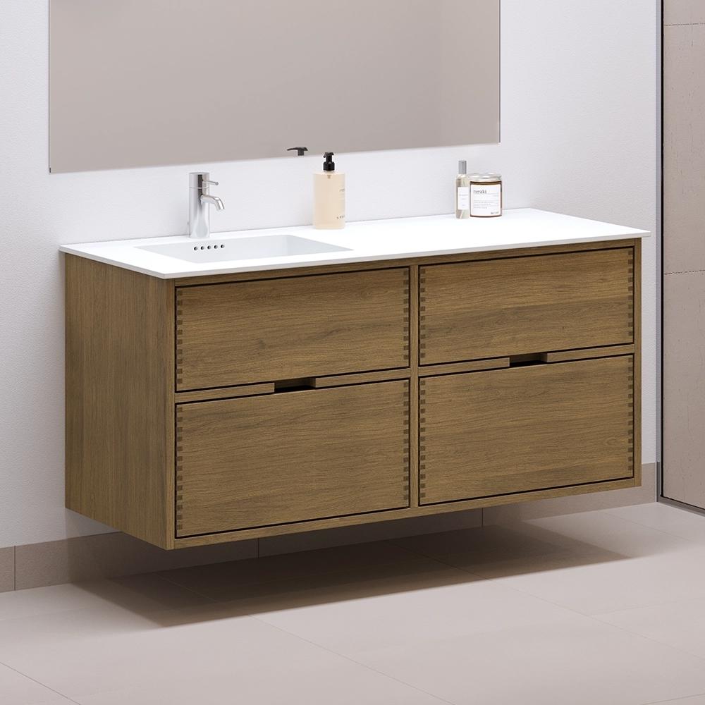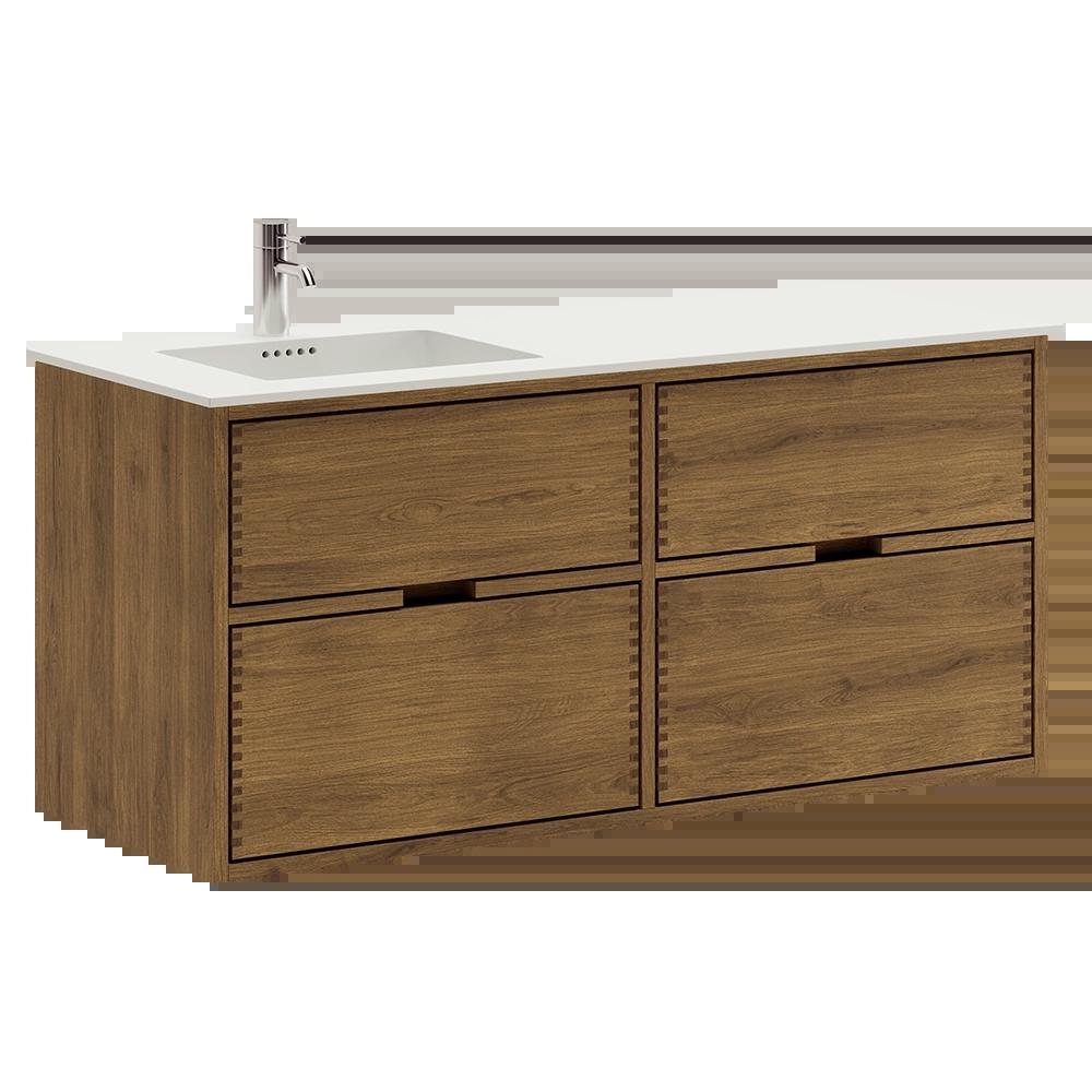 120 cm Dark Stained Just Wood Bathroom Furniture with 4 Drawers - Left Cutout
