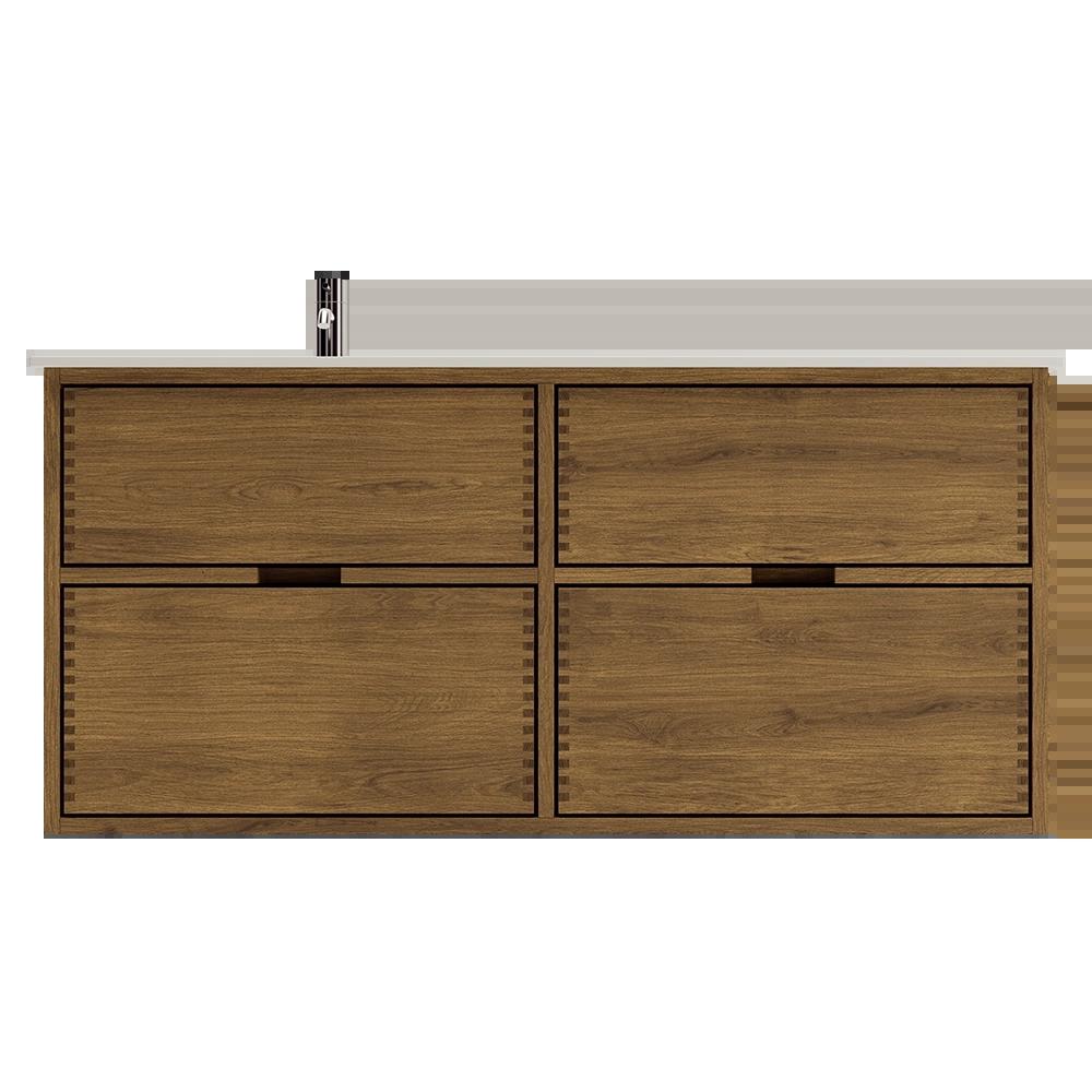 160 cm Dark-stained Just Wood bathroom furniture with 4 drawers - Left cutout 160 cm Dark-stained Just Wood bathroom furniture with 4 drawers - Left cutout