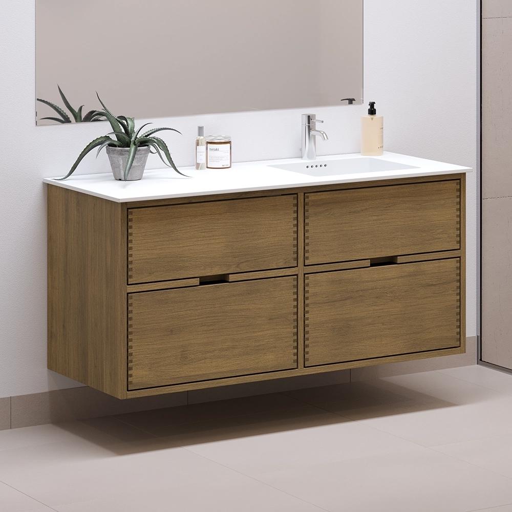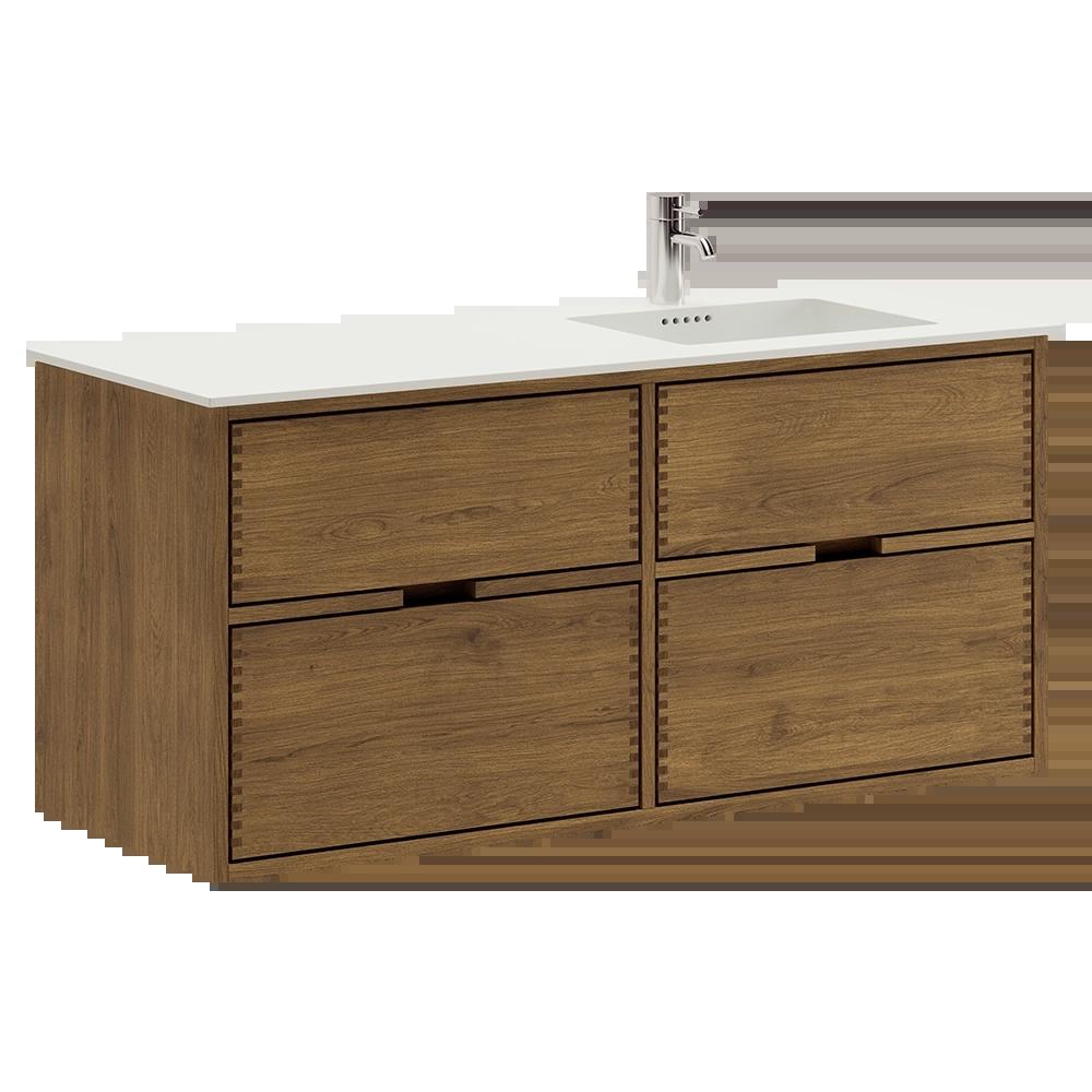 120 cm Dark Stained Just Wood Bathroom Furniture with 4 Drawers - Right Cutout