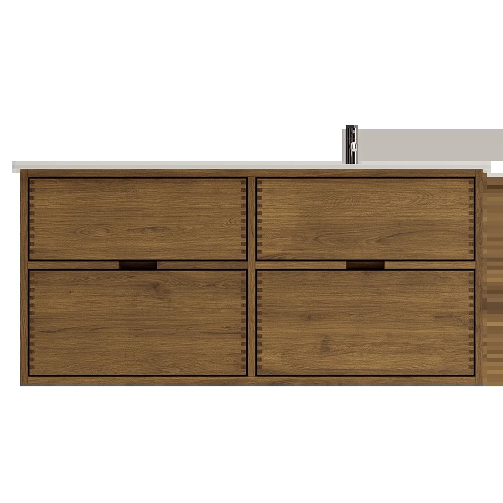 160 cm Dark Stained Just Wood Bathroom Furniture with 4 Drawers - Right Cutout 160 cm Dark Stained Just Wood Bathroom Furniture with 4 Drawers - Right Cutout