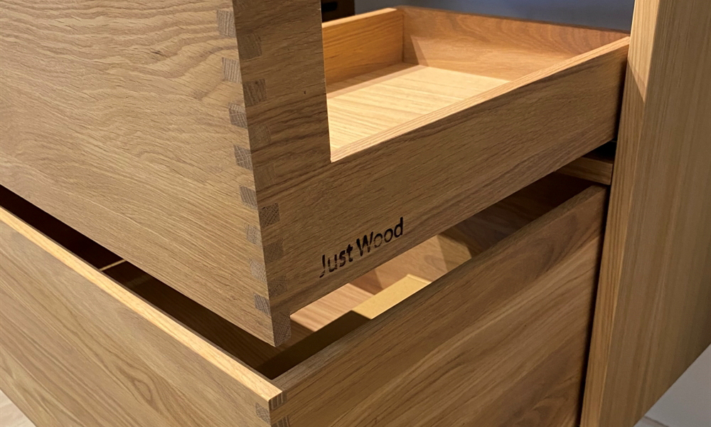 Therefore, we have put together a small video here, where you can see the process from making the finger joints to assembling the drawers. At Just Wood, we are very excited about the process from production to assembly and watch such a video with great pleasure. We hope you do the same.