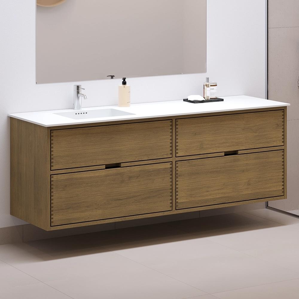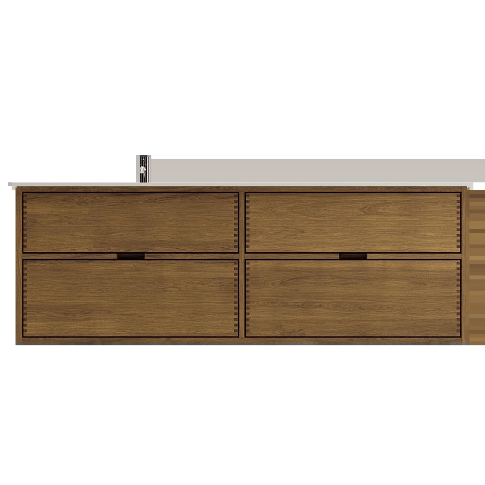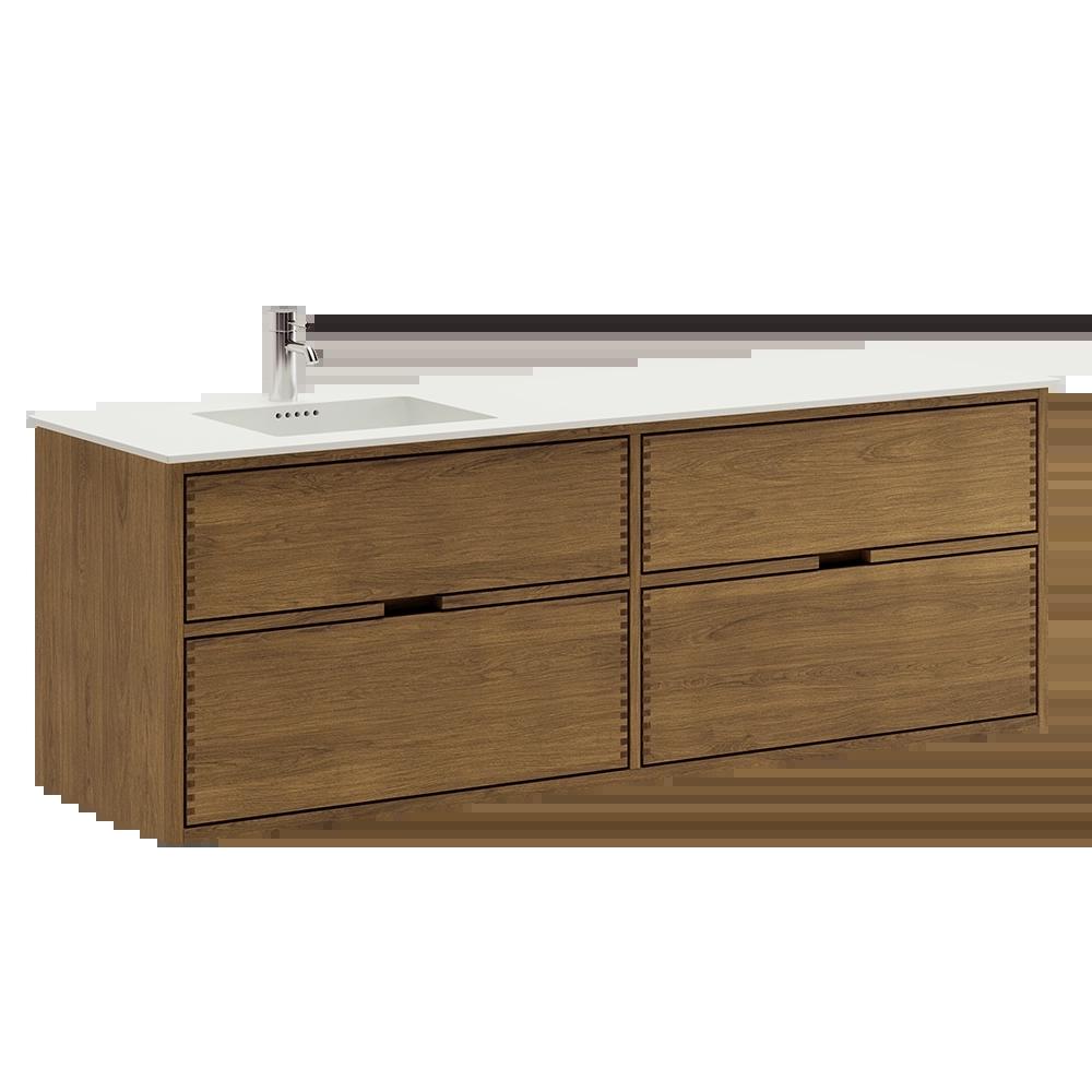 200 cm Dark Stained Just Wood Bathroom Furniture with 4 Drawers - Left Cutout 200 cm Dark Stained Just Wood Bathroom Furniture with 4 Drawers - Left Cutout