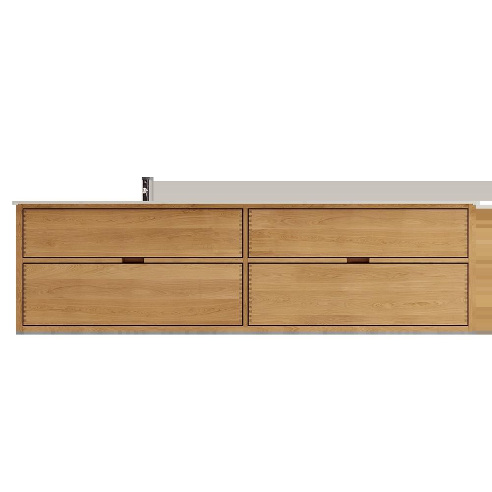 160 cm Light Oiled Just Wood Bathroom Furniture with 4 Drawers - Left Cutout 160 cm Light Oiled Just Wood Bathroom Furniture with 4 Drawers - Left Cutout